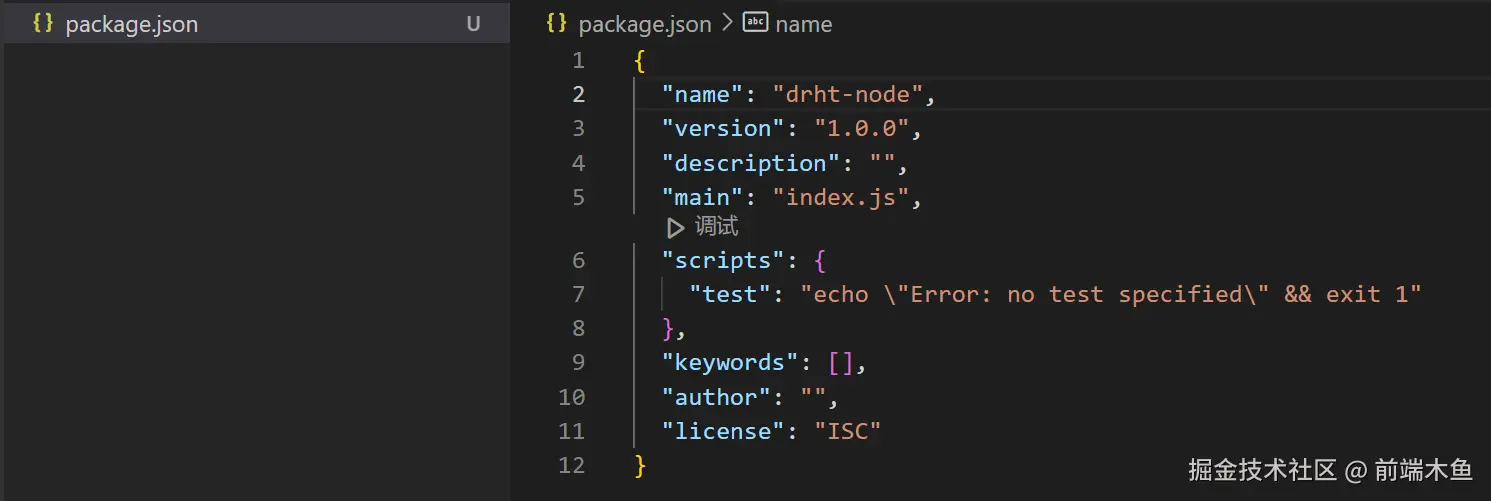 在package.json中创建启动命令
