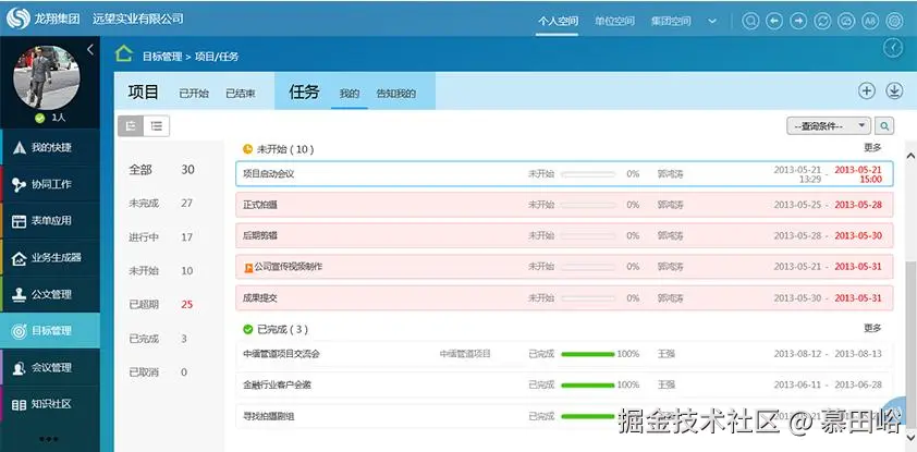 - 主要功能:任务分配、文件管理、进度跟踪、审批管理等。