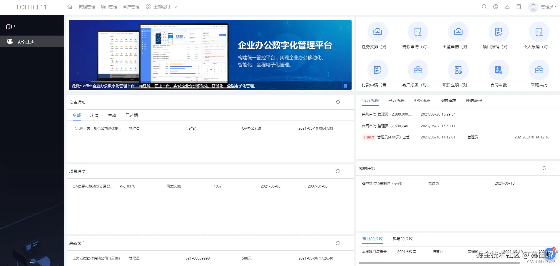 - 主要功能:流程审批、文档管理、任务管理、数据报表。