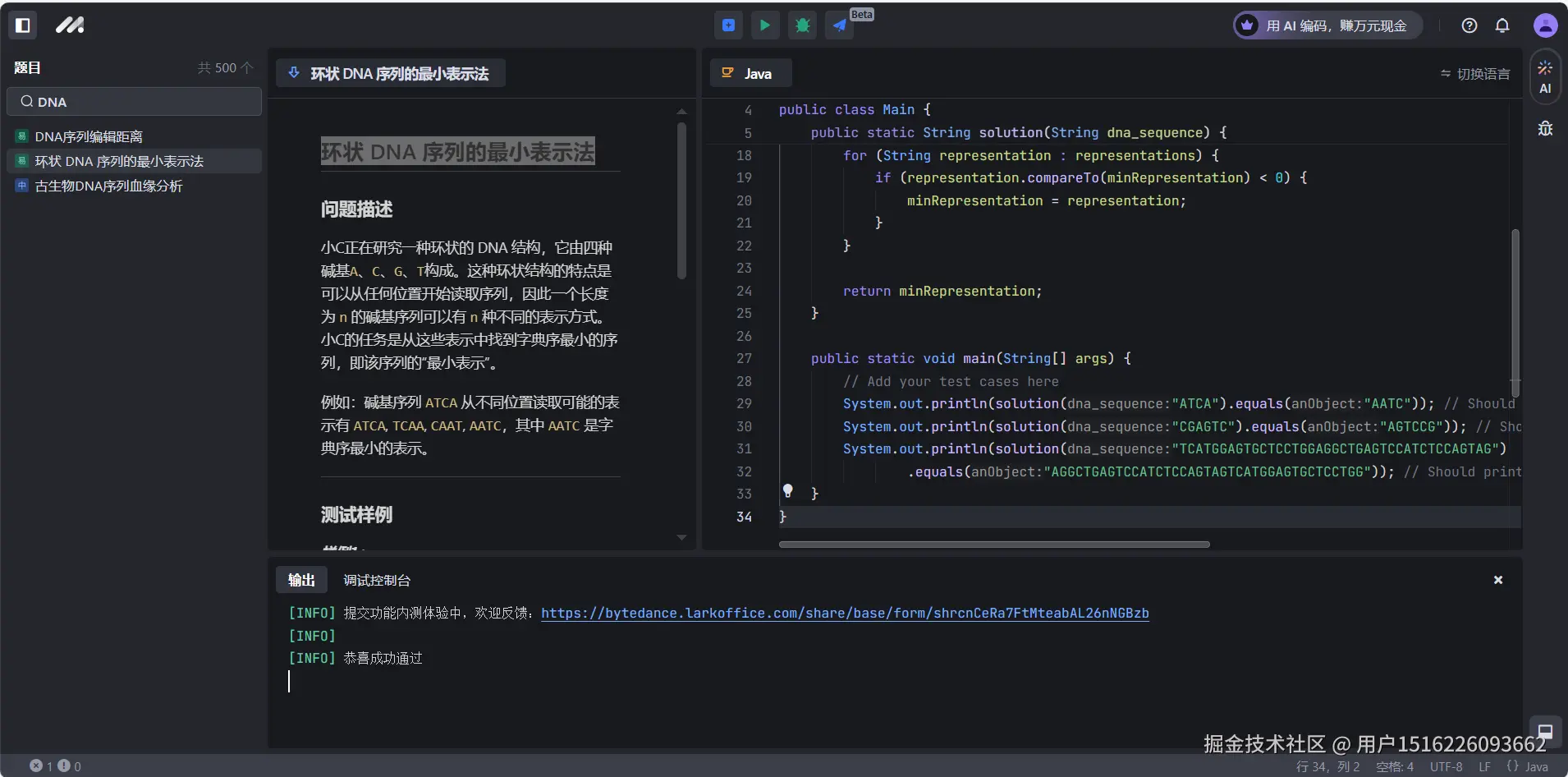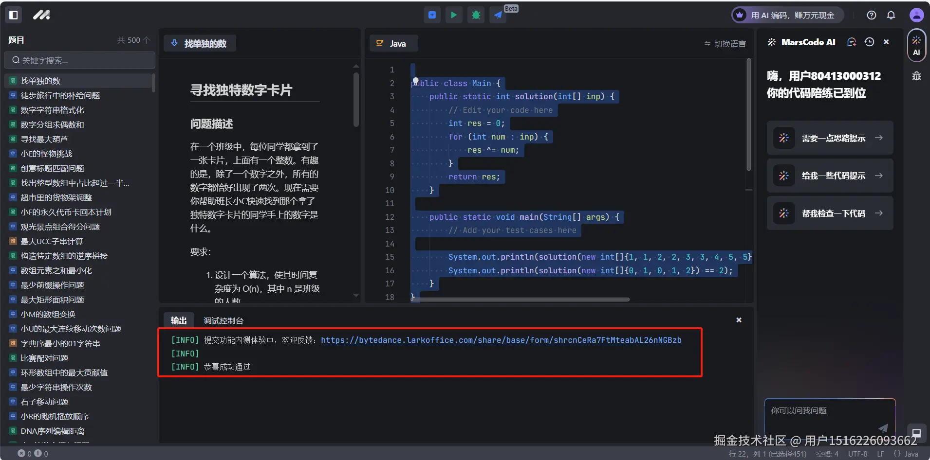 本次24青训营,入营和之前的考核模型有所不同,之前是做题,几十个选择题,两道算法题,一道简答题,现在则是在ai的辅助下进行刷题考核,此次代码考核在在线平台上,能得到大量的数据,然后使用这些数据去强化编码助手,最后就是ai助手有点傻,一个是你把他给你的代码,都过不了示例,然后他容易顺着你代码的想法,往后推理,如果你一开始的想法不对,就会进入死角。