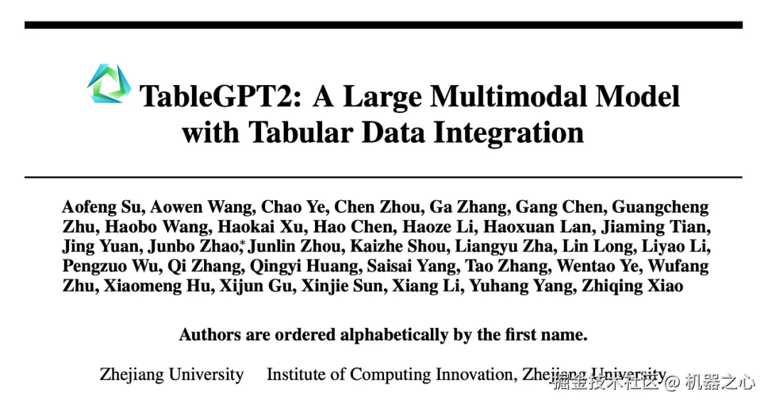 论文标题:TableGPT2: A Large Multimodal Model with Tabular Data Integration