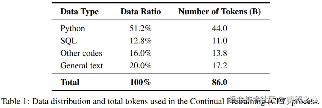 为了实现 TableGPT2 的目标,该团队首先是通过持续预训练(CPT)来提升模型的编程和推理能力。