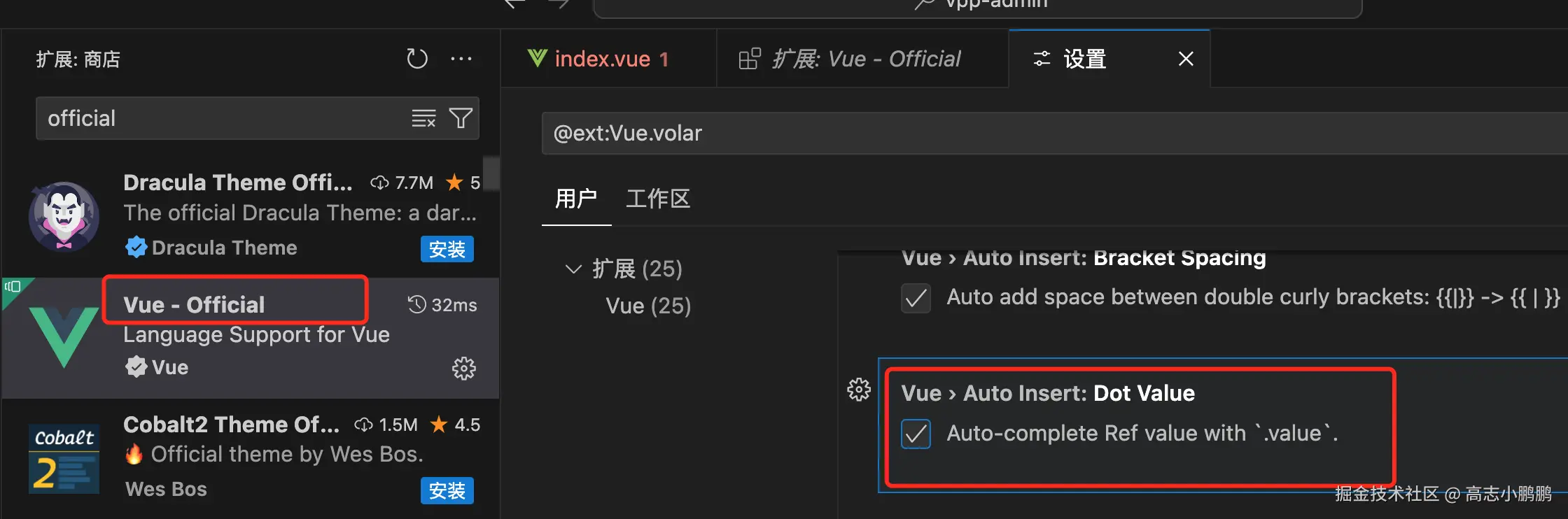 很多人很烦.value的小尾巴,认为每一次都要.value一下,其实很多VS Code可以帮我们解决这个问题,自动填充