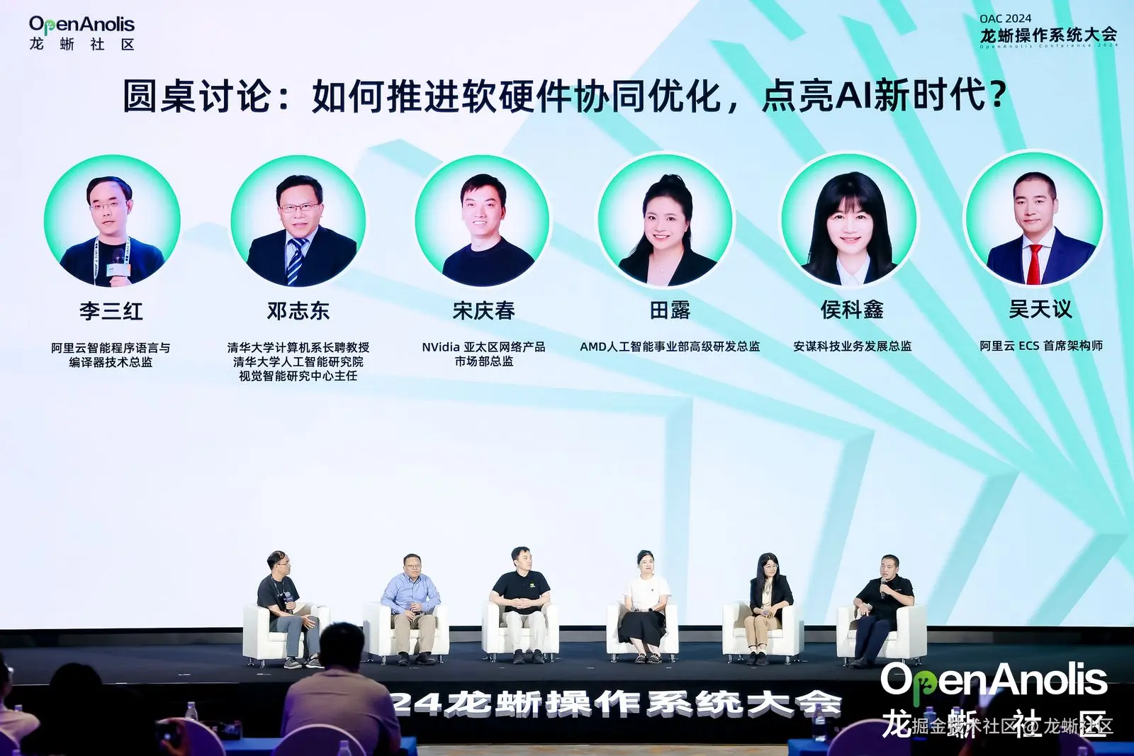 由阿里云智能程序语言与编译器技术总监李三红主持,邀请了清华大学计算机系长聘教授,清华大学人工智能研究院视觉智能研究中心主任邓志东,安谋科技业务发展总监侯科鑫,NVidia 亚太区网络产品市场部总监宋庆春,阿里云智能集团弹性计算资深产品技术架构师吴天议等嘉宾共同探讨 “如何推进软硬件协同优化,点亮 AI 新时代” 。清华大学计算机系长聘教授,清华大学人工智能研究院视觉智能研究中心主任邓志东表示,未来 AI 算力需求将会数量级别的增加,大模型不仅可以助力操作系统的发展,也可促进 CPU 的效能提升与定制化芯片的设计。同时,他也讨论了异构计算在当前和未来架构中的应用及挑战,以及操作系统在处理复杂计算架构时的必要性。安谋科技业务发展总监侯科鑫指出,随着 AI 的快速发展,模型变得越来越复杂,导致基础设施的算力要求更高。安谋科技为 AI 的发展提供了提高计算效率、降低功耗的解决方案。同时,她也强调了 CPU 和 GPU 协同工作的重要性,以及在不同场景下 CPU 和 GPU 的最优利用。NVidia 亚太区网络产品市场部总监宋庆春强调了软件和硬件协同设计对于推动 AI 发展的关键作用,并指出数据中心不应仅被视为硬件堆砌,而应像一台计算机那样考虑软硬件协同。除此之外,宋庆春强调了网络在实现高性能扩展中的核心地位,以及对优化数据中心性能、实现线性可扩展的必要性。阿里云智能集团弹性计算资深产品技术架构师吴天议从云的角度,提及了在云计算环境中如何更好地利用 AI,特别是在多租户共享和安全切分方面的发展。