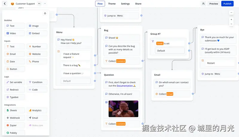 Typebot是一个在无代码界面中创建聊天机器人的平台。
