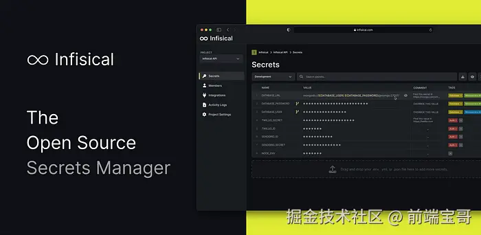 管理敏感的环境变量可能很棘手,尤其是在不同团队之间。 Infisical 使这变得轻而易举,它可以安全地存储和管理秘密,例如 API 密钥和密码。 它开源且以安全性为中心构建,这意味着你的所有秘密都将安全且加密。