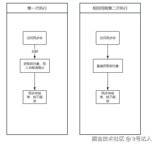 当有了一个线程访问的时候,则锁会升级成偏向锁的,会将对象头内的指针指向当当前的线程id,此时这个锁对象是不会释放的,而是由这个线程持续的持有,所以当当前线程重复执行的时候,不需要重新获取锁,也不需要重新竞争,此时的性能是最好的。