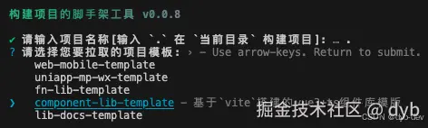3. 接下来继续输入 . ,然后选择 component-lib-template 模板