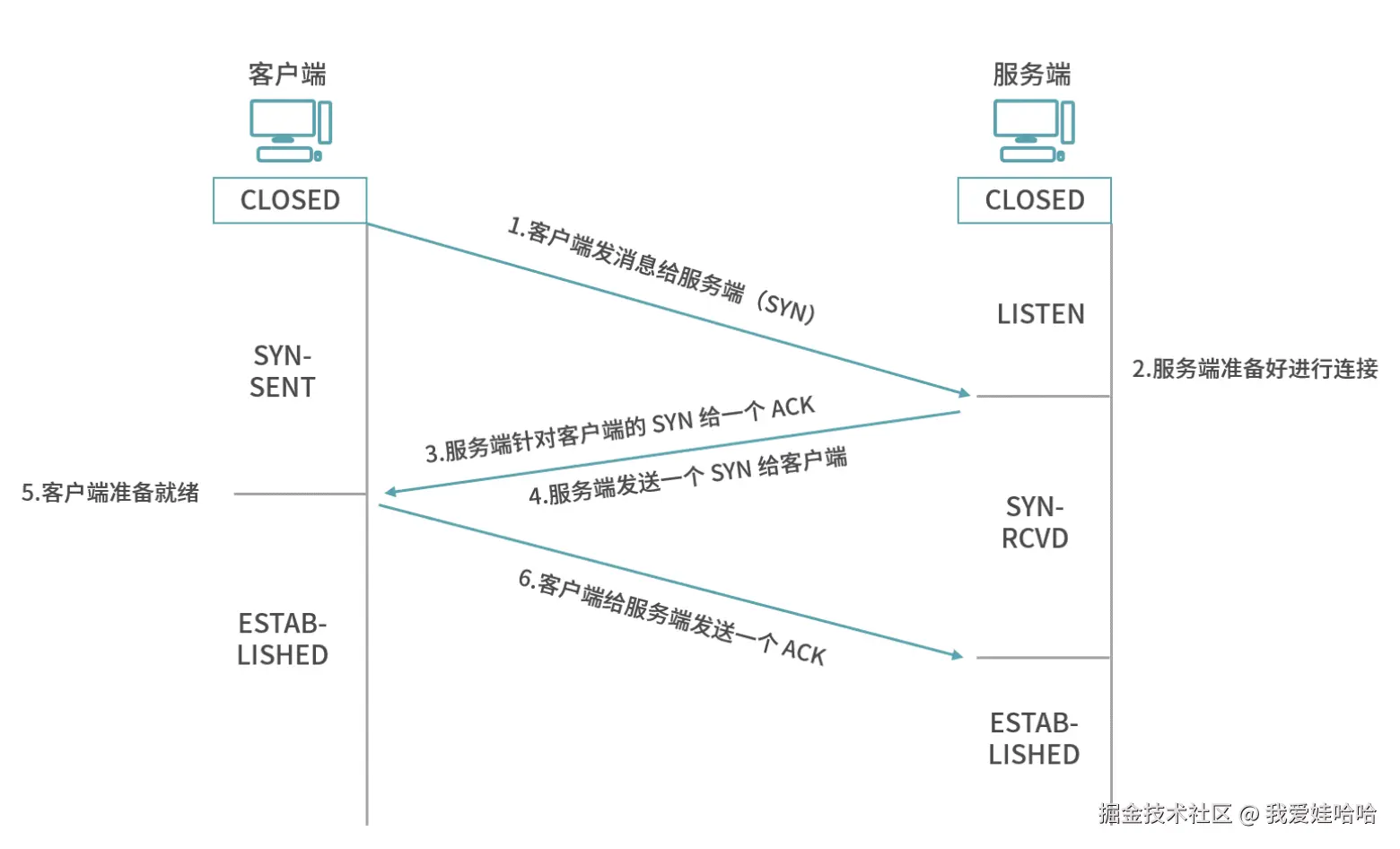 - 这一步是客户端对服务器回应的确认,告诉服务器,“我已经收到了你的同意建立连接的数据包,我们可以开始数据传输了”。通过三次握手,客户端和服务器之间就建立了一个可靠的双向连接,双方都知道了对方的初始序列号,并且可以根据序列号对数据包进行排序和确认,确保数据的正确传输。