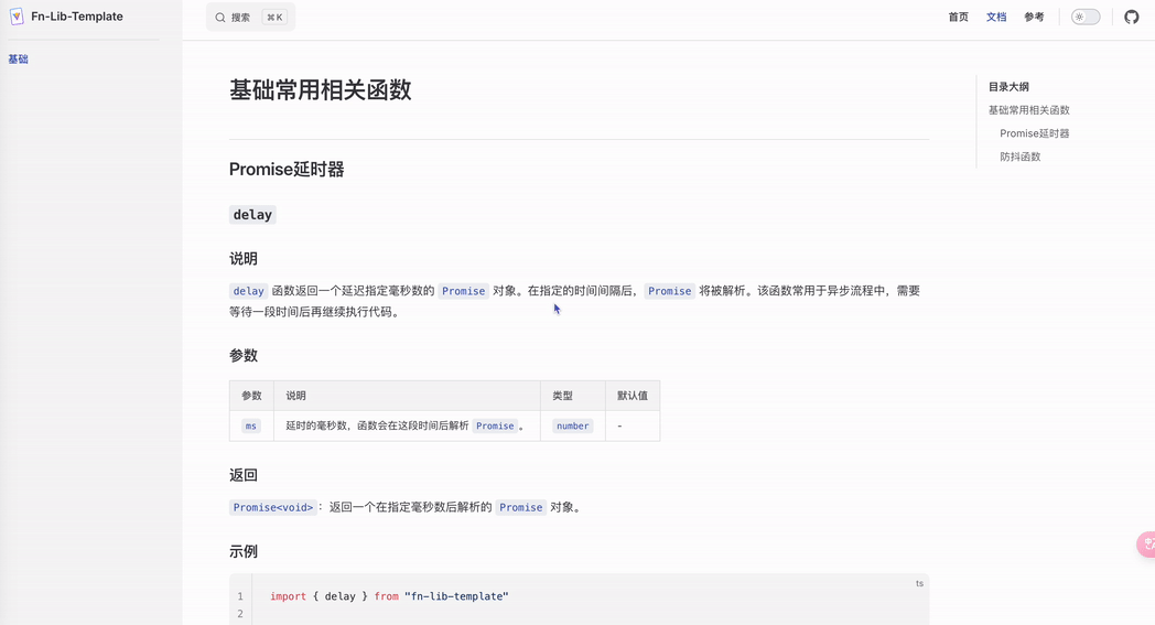 该模板还支持TS类型声明自动生成、主题定制、代码预览、移动端控制台调试、本地搜索、本地https服务、PWA离线访问等功能,最最最重要的一点是配置极其简单,并且大部分配置集成在一个文件当中,方便统一管理,只需简单配置便可搭建你的技术文档站点,还等什么快快使用起来吧!