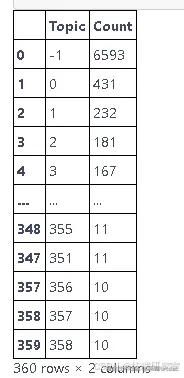 这里需要注意的是,主题编号为 -1 的情况可能表示一些未被明确分类或特殊处理的文本情况,其出现次数较多可能与数据本身的特性或模型处理方式有关。