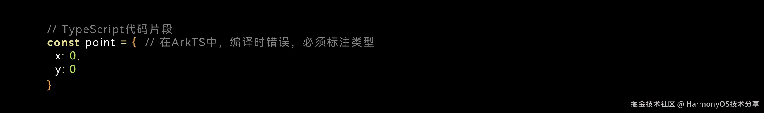 ArkTS通过规范约束了TS中过于灵活而影响开发正确性或者给运行时带来不必要额外开销的特性,下面通过代码片段说明部分约束特性。