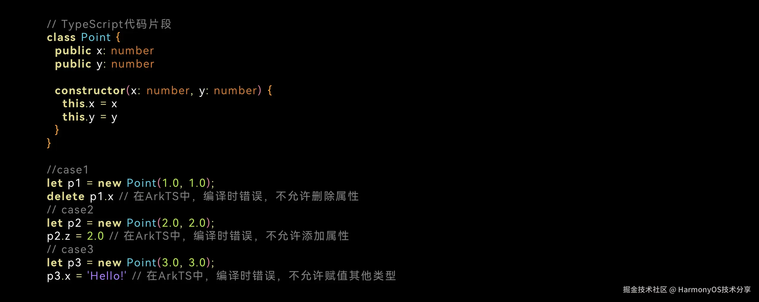 对象布局固定:为最大化性能,ArkTS禁止在运行时改变对象结构,确保程序执行期间的稳定性和效率。