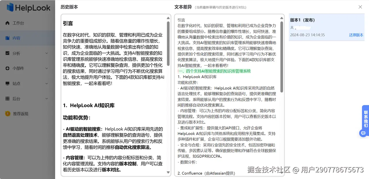在日新月异的商业环境中,培训内容需要不断更新以反映最新的技术和业务需求。内部知识库通过版本控制功能,实现了对培训内容的实时更新和追踪。每次内容的修改都会被详细记录,并可以方便地回溯至历史版本。这不仅确保了员工能够始终访问到最新、最准确的信息,还有助于解决多人协作编辑时可能出现的版本冲突问题。通过定期审核和更新培训内容,内部知识库能够保持其时效性和准确性,为员工提供高质量的学习资源。