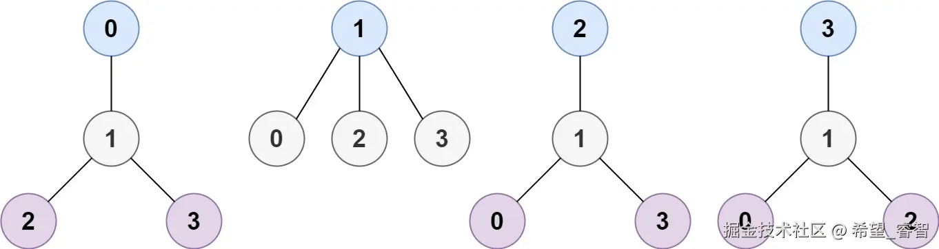 输入:n = 4, edges = [[1, 0], [1, 2], [1, 3]]