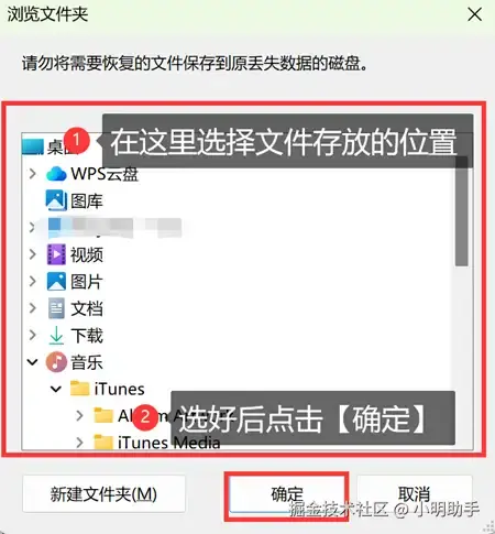 步骤3:点击【导出】后,在【浏览文件夹】里选择恢复文件的存放位置后,点击【确定】。