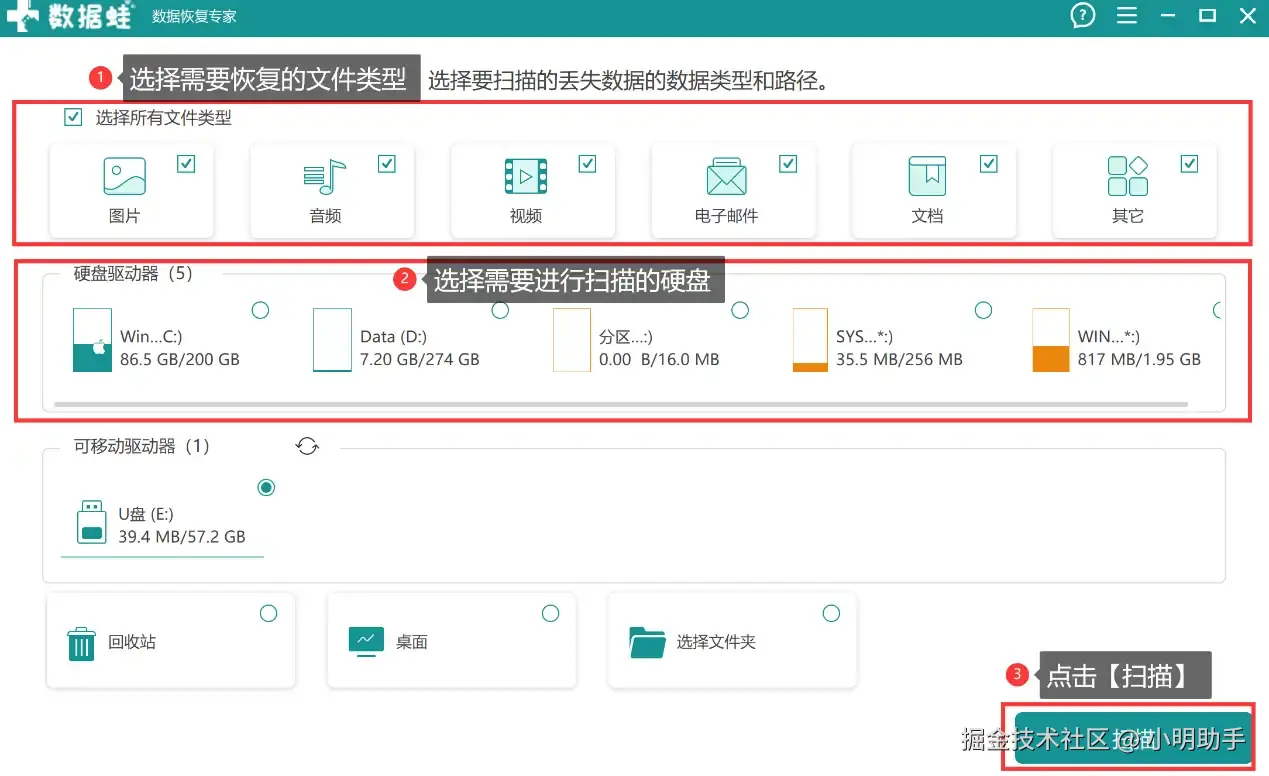 如果用户需要较为简单且高效的方法进行电脑硬盘恢复,电脑硬盘数据如何恢复?这里会比较建议大家去选择使用一款合适自己的电脑数据恢复软件,如数据 蛙恢复专家。