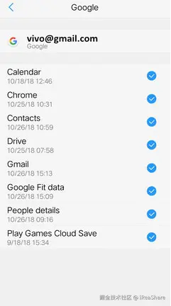 - 在帐户列表中点击“Google”,然后选择您的 Gmail 帐户进行备份。(如果需要,请按“添加帐户”按钮添加新的 Google 帐户。)