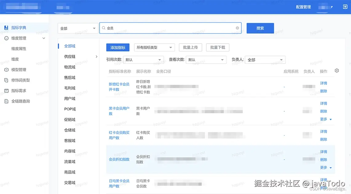 指标和元数据相互关联。如先有指标,可通过关联元数据来赋能技术口径。更好了解数据的来源、定义和质量,从而更好地理解指标的含义和价值。