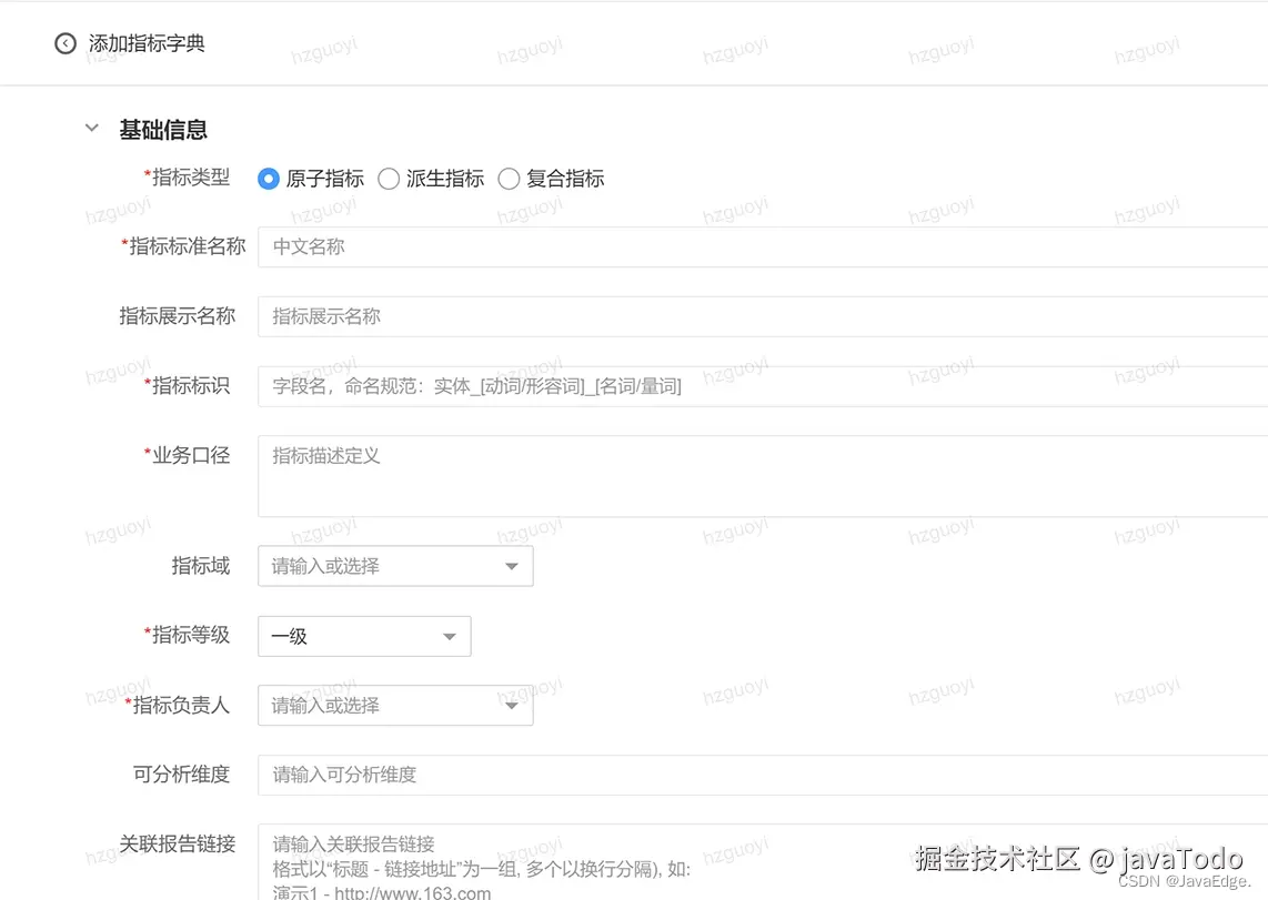 - 区分指标类型,对于派生指标,要明确指标的统计粒度、修饰词、时间周期以及关联的原子指标;