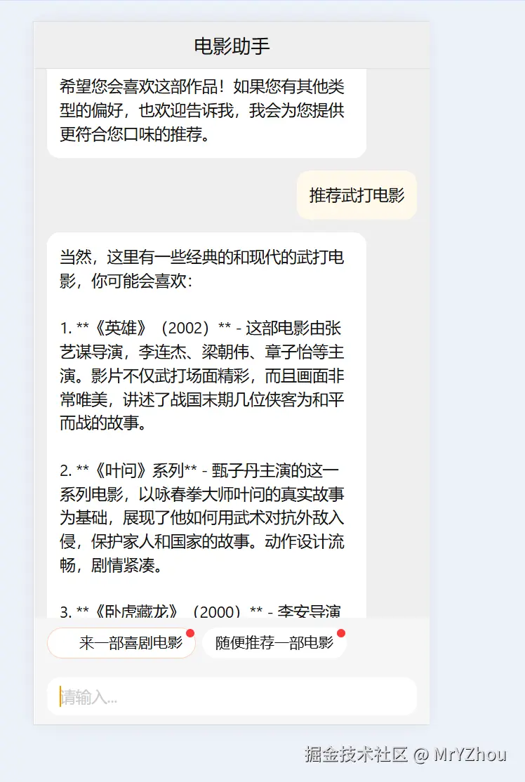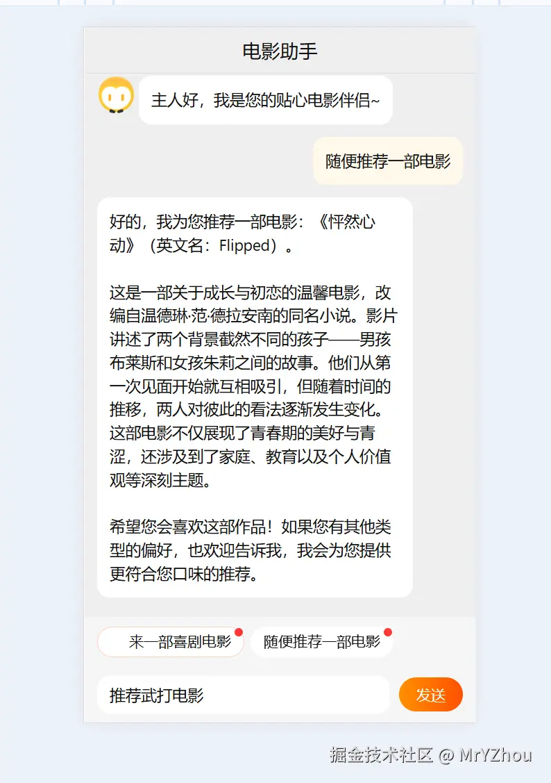 content: { text: "主人好,我是您的贴心电影伴侣~" },