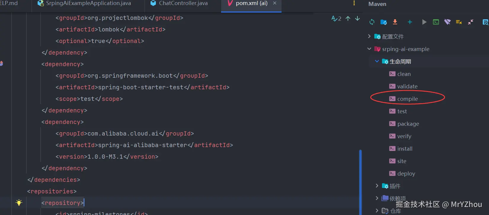 由于 spring-ai 相关依赖包还没有发布到中央仓库,需要配置额外镜像源