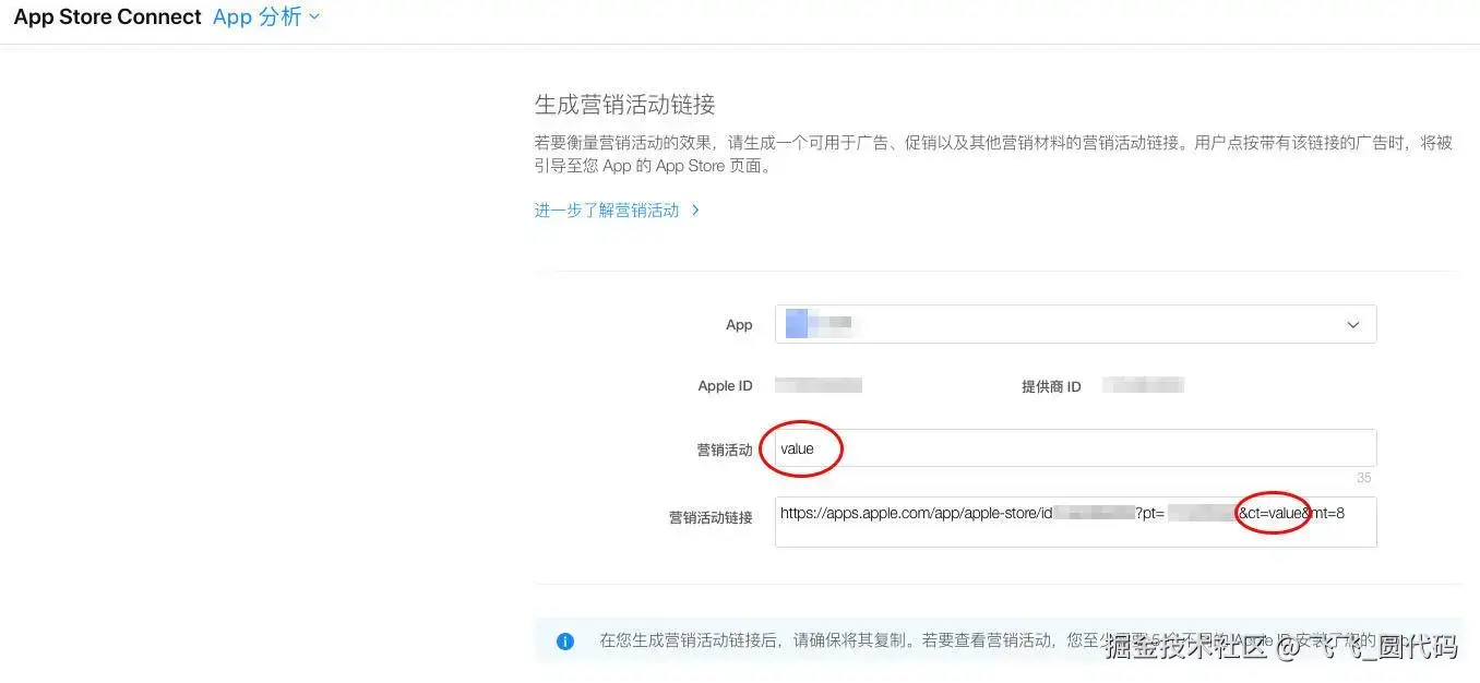 **iTunes Connect App 分析:**苹果官方统计功能。只需要在 iTunes Connect“App 分析”的“来源”中点击“营销活动”,右上角有个“生成营销活动链接”,进入后就能自定义设置对应的唯一标识,给每个渠道生成专属的渠道链接。将生成的活动链接,用于实际用途中,当访问该链接跳转的 AppStore,则便会统计到具体的营销活动中。