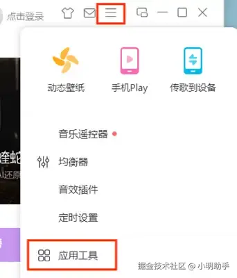第一步:点击右上方的【主菜单】按钮,选择下拉列表中的【应用工具】。