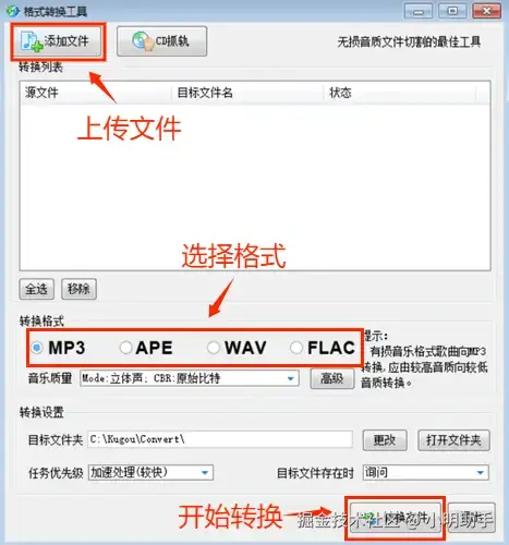 第三个要介绍的音频转换方法是使用音乐播放软件进行音频转换。随着时代的发展,许多音乐播放器不再只有音乐播放、下载等基础功能了,它们还内嵌了简单的音频转换功能以便用户使用。下面,小编就以酷狗音乐为例,简单介绍一下怎么用它来进行在线音频转换吧。