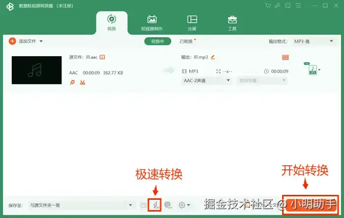 第五步:您还可以点击界面下方的闪电型按钮选择进行【极速转换】,所有设置完成后,点击【全部转换】即可。