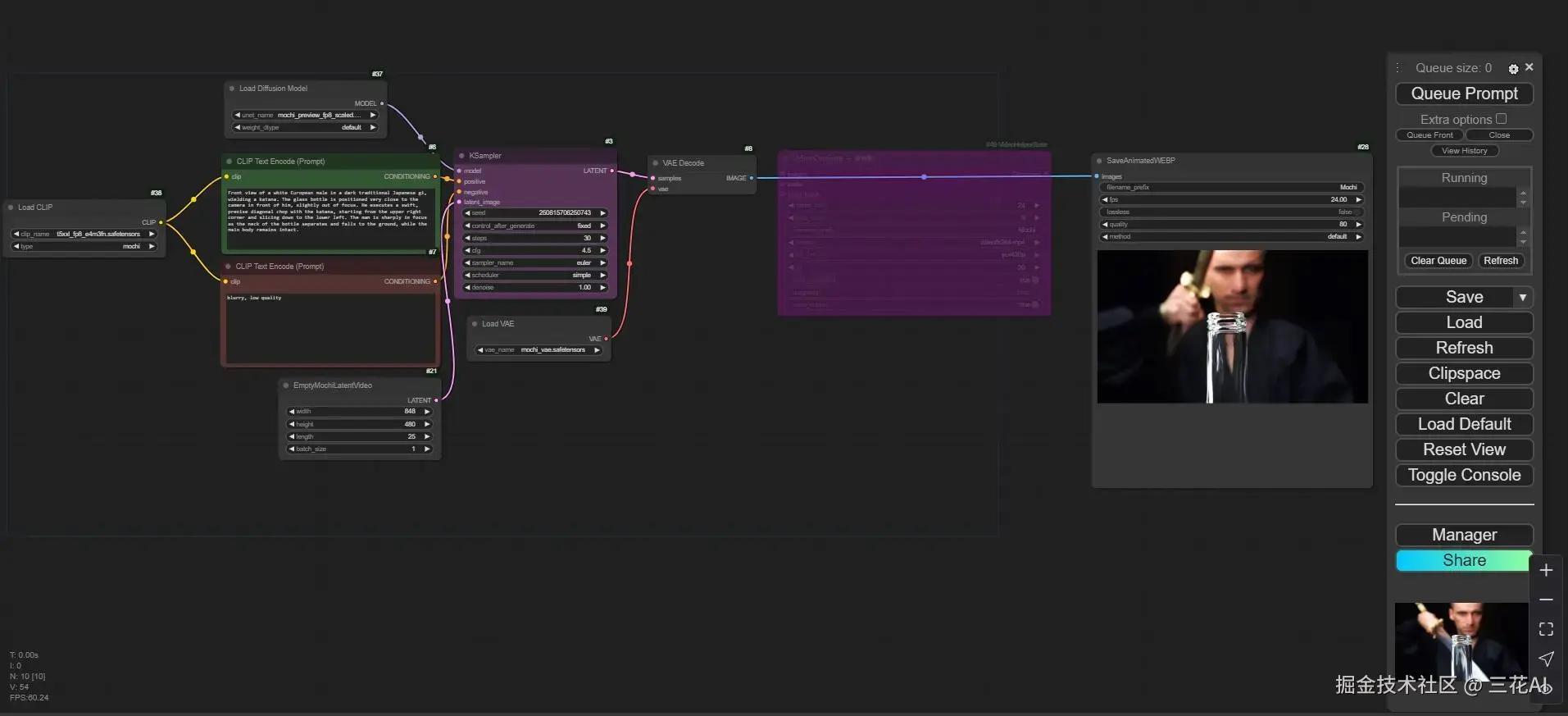 ComfyUI 在 v0.2.7 版本中已原生支持 Mochi 模型,但仍需 4090 显卡才能运行。现在,Mochi 有一个多合一的 fp8 checkpoint,仅需 12GB VRAM 即可运行。要知道,Mochi 刚推出时需要 4 张 H100,如今消费级显卡也能轻松驾驭,开源万岁呀。