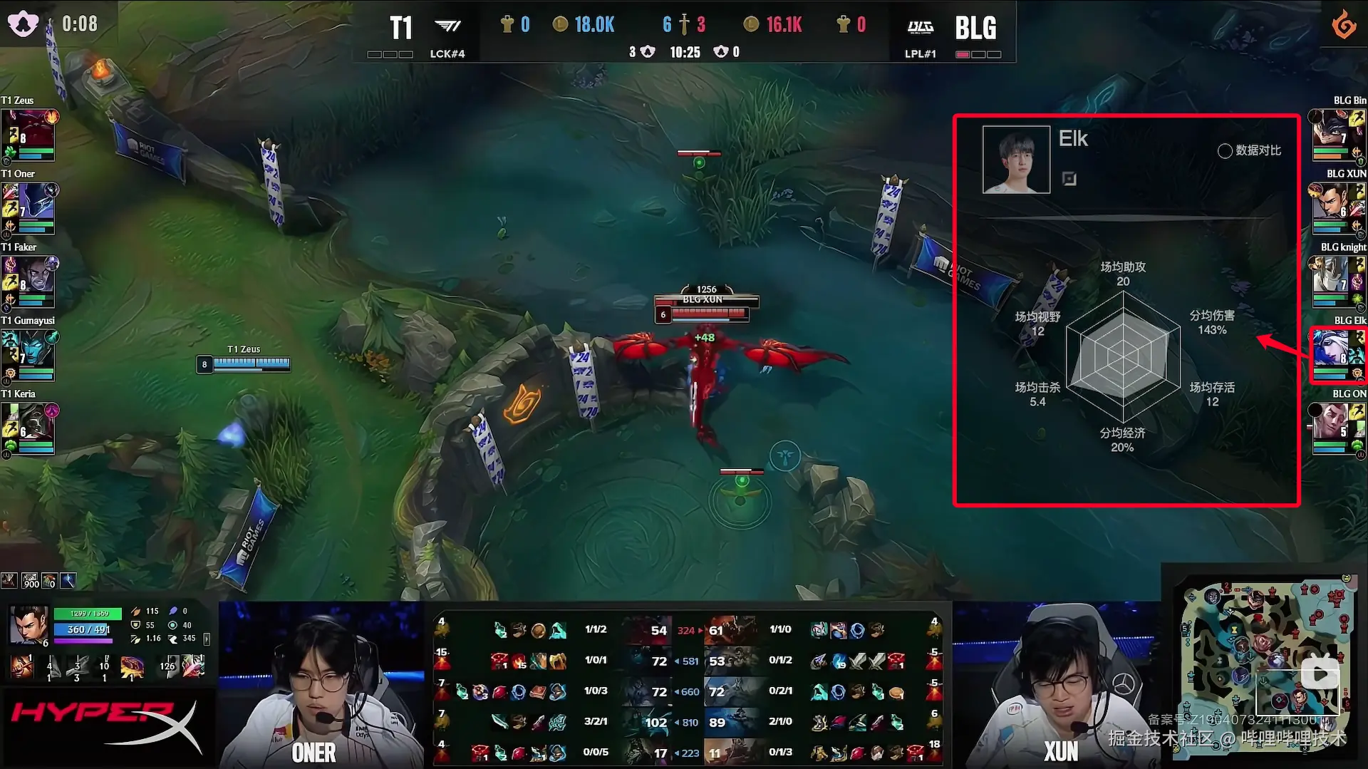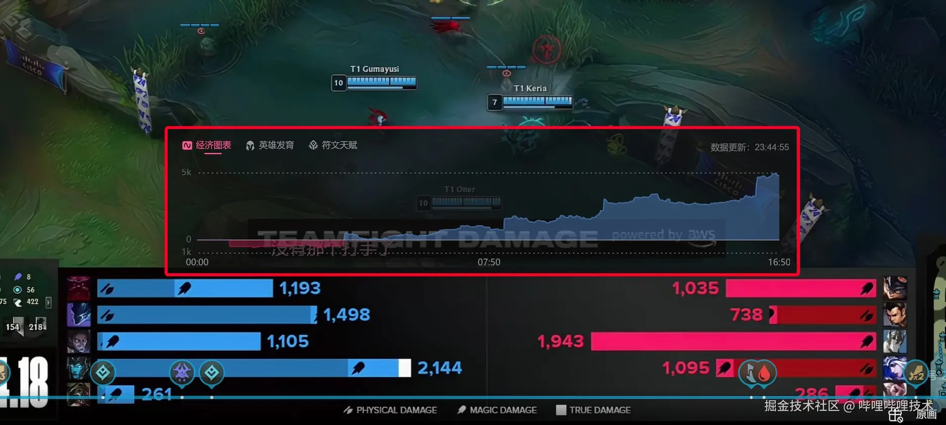 如图10、图11红框所示,一旦热区数据展示功能被触发,它将展示选手的个人数据以及各队伍的经济图表、英雄发育情况和符文天赋等关键信息。