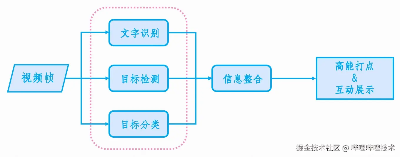 最终我们将分散的信息整合起来,生成一个连贯的赛事叙事,为观众提供更加全面的比赛视角。借助文字识别、目标检测、分类等技术手段,我们完成了一套如图4所示的从信息提取到信息分析,再到信息整合的多模态识别链路,最后将高能点呈现在时移进度条中,并为观众提供互动功能。
