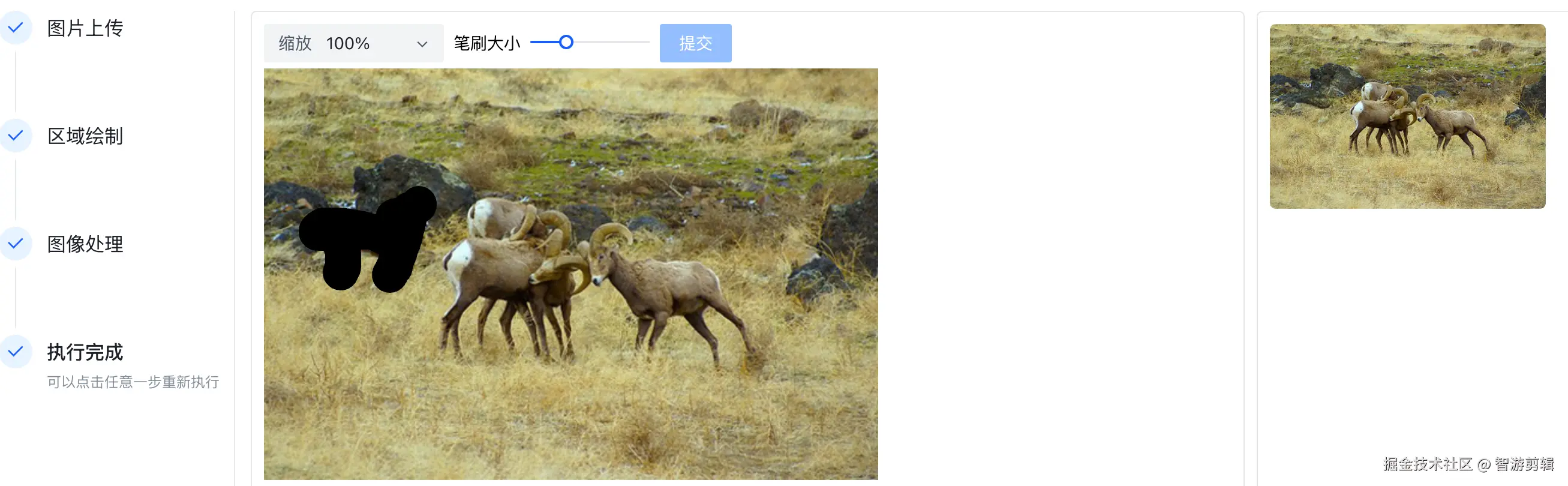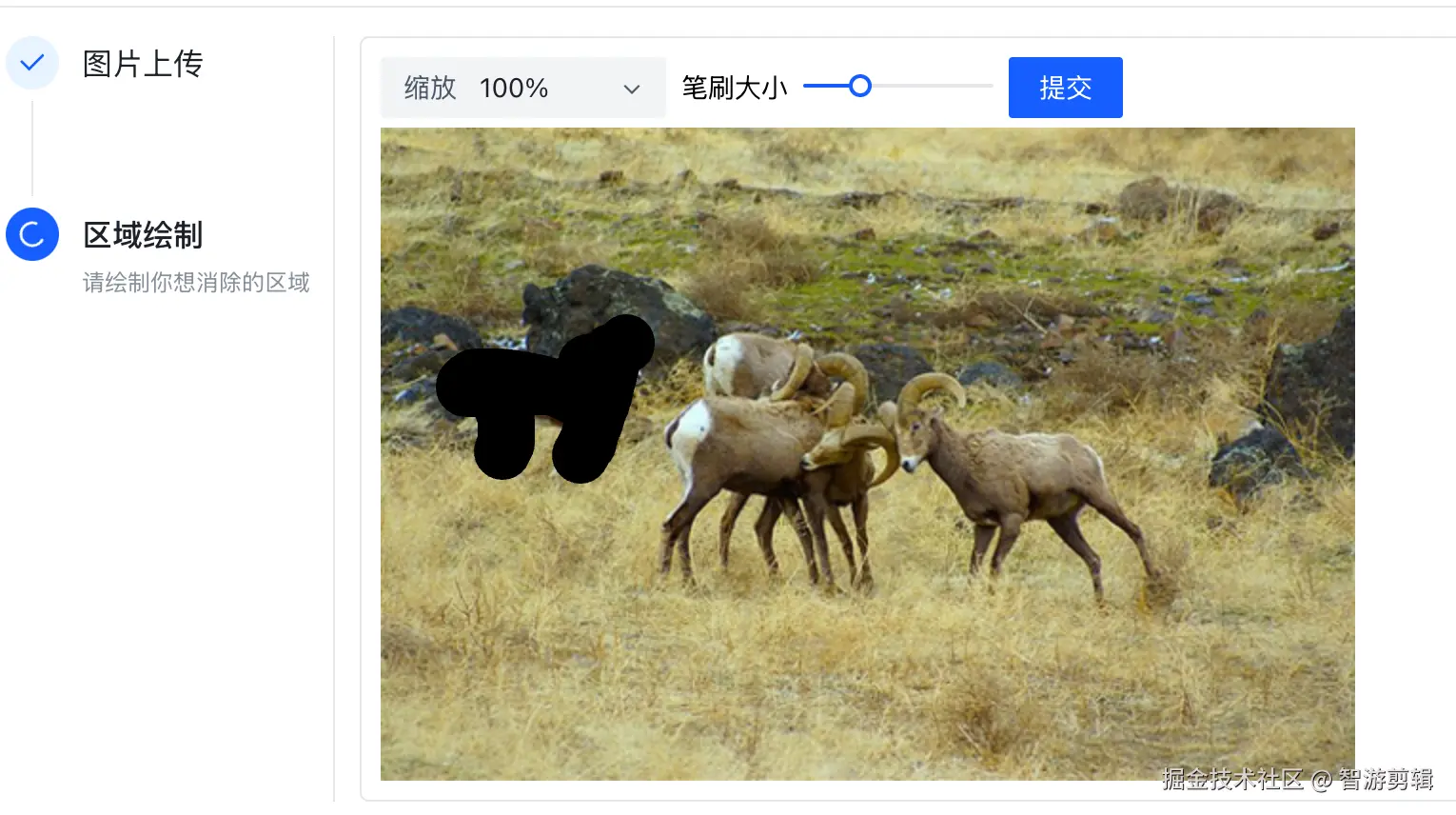 上传后第第二步就是绘制自己想擦除的位置,这个是一个画板,我们直接把不想要的部分涂掉就可以了,操作非常简单