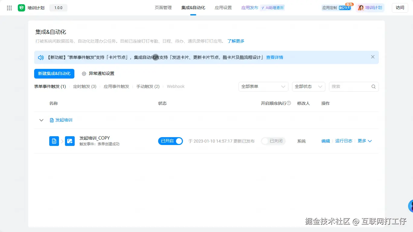 宜搭的后台数据处理逻辑主要集中在集成&自动化中,可以设置对数据的流转处理逻辑。自动化封装了常用的数据查询、更新、删除等函数,支持条件判断、循环等逻辑,通过连接器可以调用第三方接口,方便引用外部应用数据。整体还是以表单的形式调用后台数据逻辑,对于通用的后台数据处理逻辑的复用性较低。