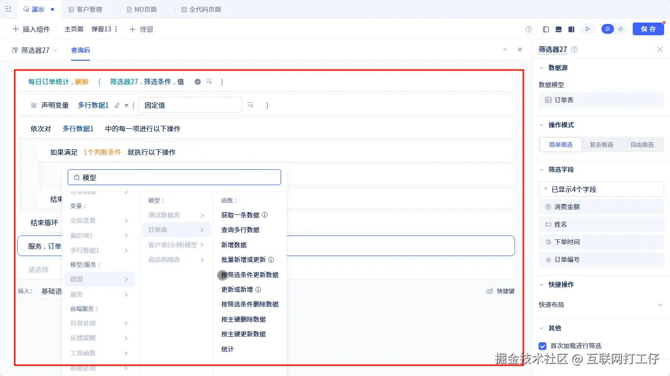 主要介绍在标准页面中的业务逻辑可视化设计能力,极态云的逻辑设计可视化能力主要体现在以下几点: