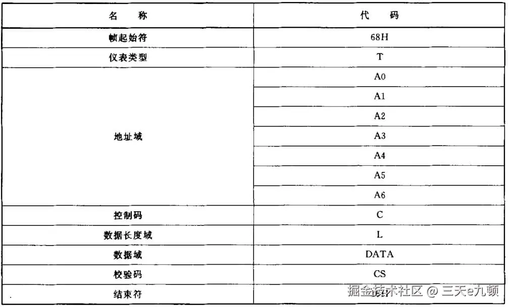 地址域(A0~A6)由七个字节组成,每个字节为2位BCD码格式。地址长度为14位十进制数,低地址在前,高地址在后。其中A5、A6为厂商代码。