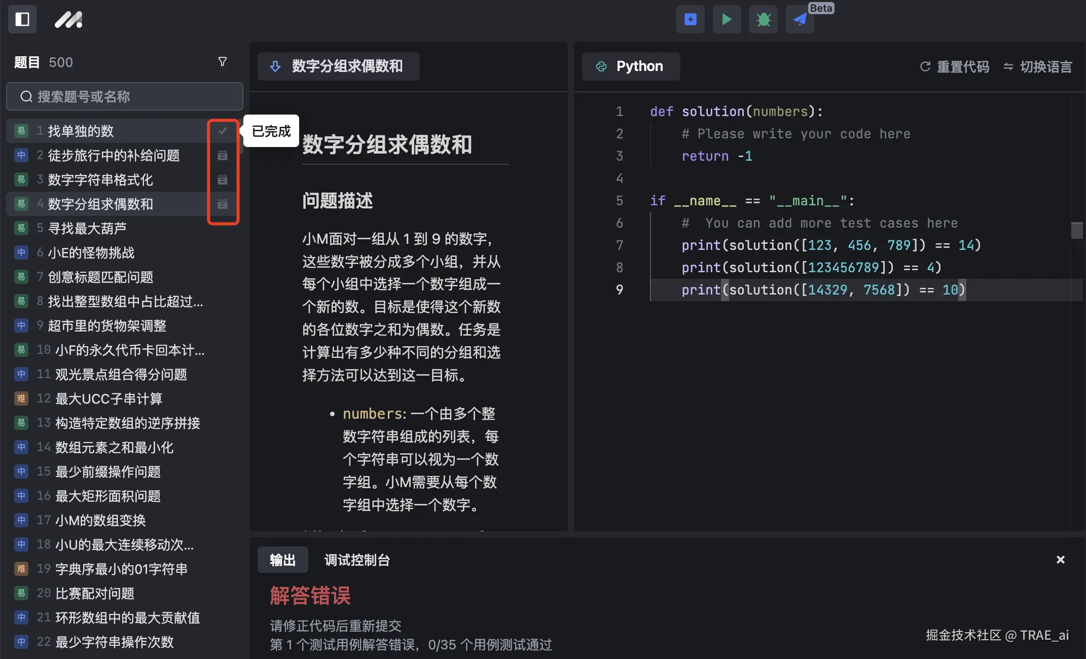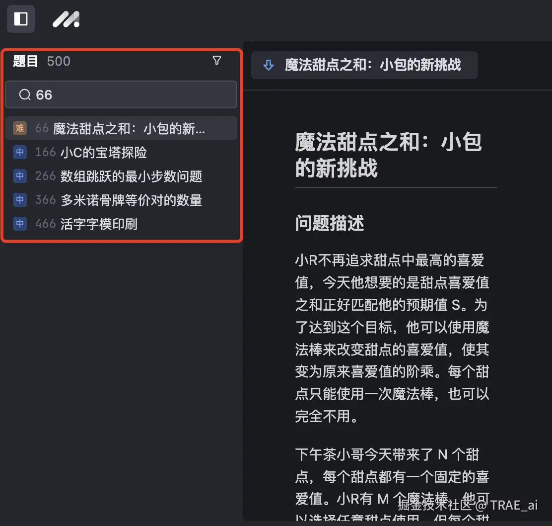 豆包MarsCode AI 刷题将全功能的代码编辑器和 AI 能力相结合,希望帮助开发者们更高效地进行算法题目练习,上百道精选题目,助你顺利拿到自己的心仪 offer!