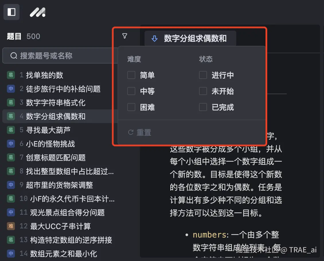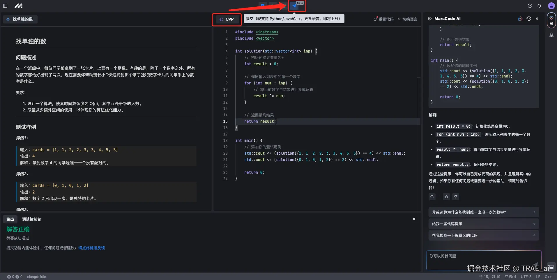 豆包MarsCode AI 刷题将全功能的代码编辑器和 AI 能力相结合,希望帮助开发者们更高效地进行算法题目练习,上百道精选题目,助你顺利拿到自己的心仪 offer!