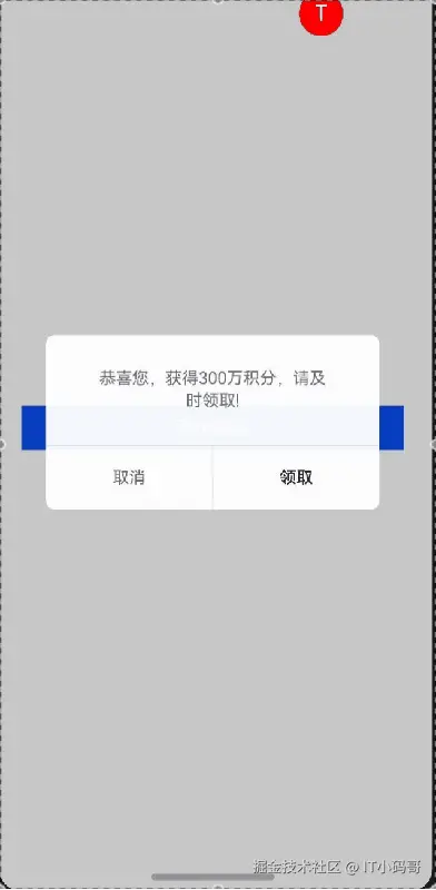 DialogView({ eventModel: params,content:"恭喜您,获得300万积分,请及时领取!",confirmBtnContent:"领取",cancelBtnContent:"取消" })