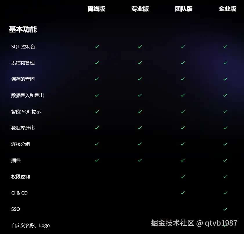 | 共享所有SQL脚本命令 | - | ✅ | ✅ | ✅ |