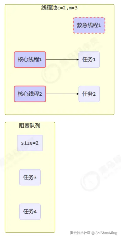 //当任务数超过 coreSize 时,加入任务队列暂存