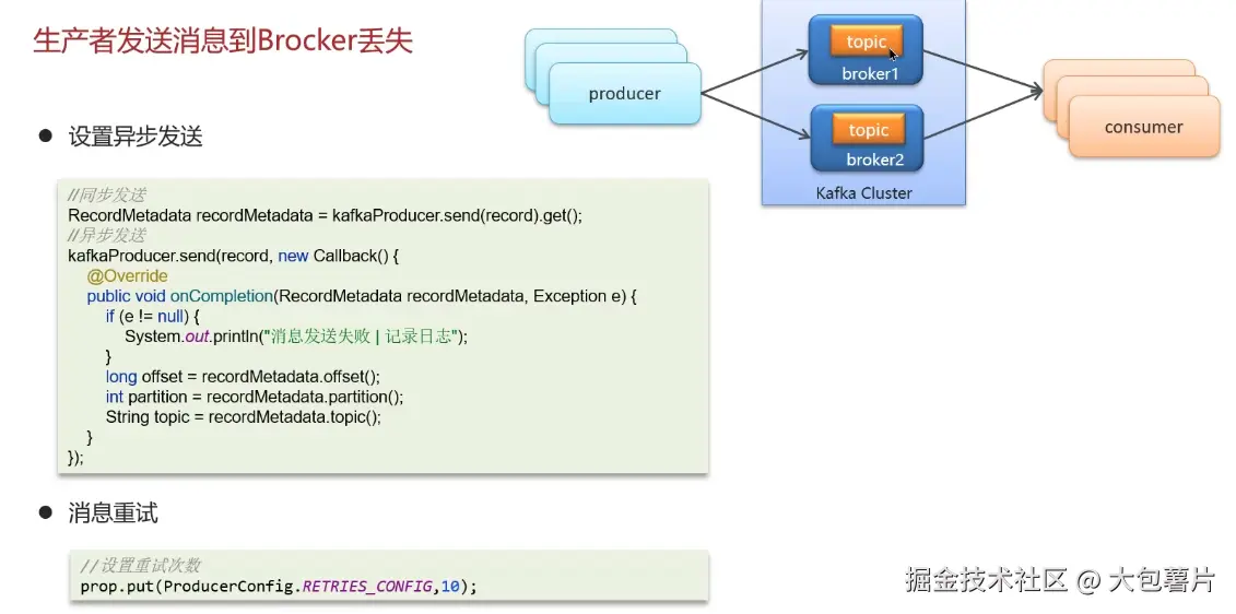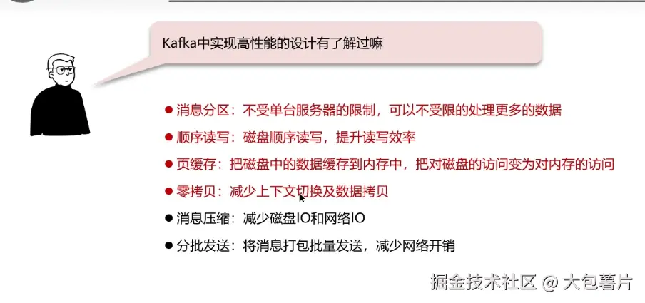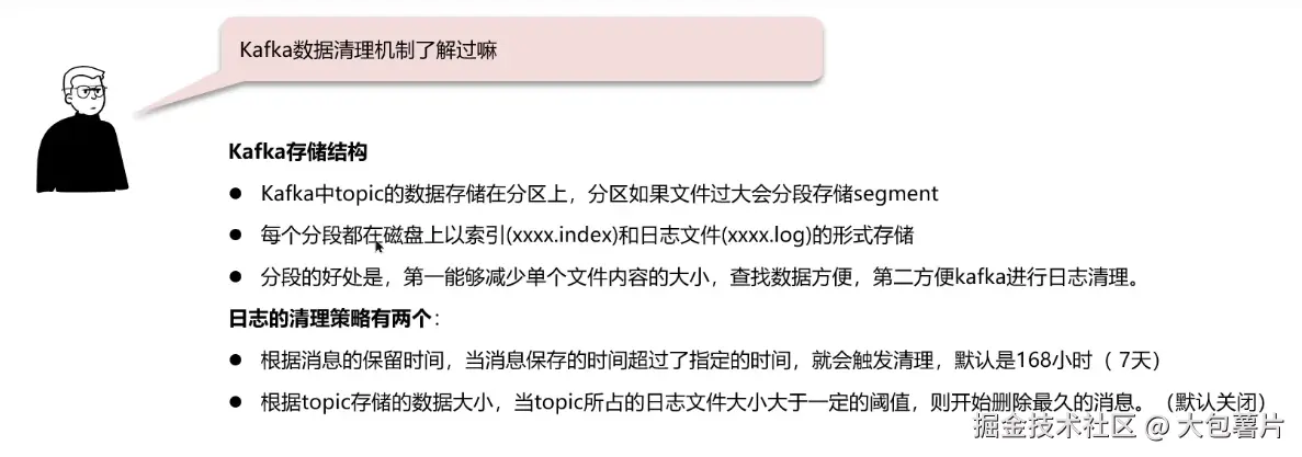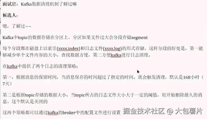 消息中间件---Kafkaℹ️ 大包薯片 2024-11-08 30 阅读1分钟 Kafka 自己学习时候截的图,记录一下。 1. Kafka如何保证消息不丢失 2. Kafka如何保证消息的顺序性 3. Kafka高可用机制 集群模式 分区备份机制 4. Kafka数据清理机制 5. Kafka实现高性能的设计