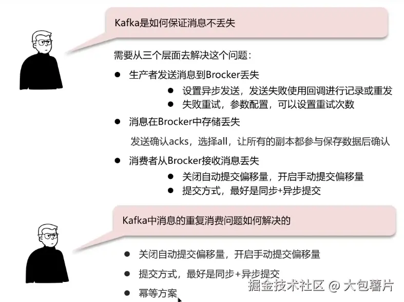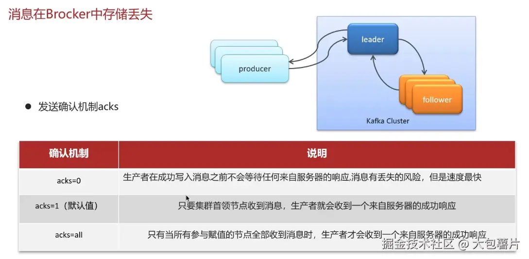 消息中间件---Kafkaℹ️ 大包薯片 2024-11-08 36 阅读1分钟 Kafka 自己学习时候截的图,记录一下。 1. Kafka如何保证消息不丢失 2. Kafka如何保证消息的顺序性 3. Kafka高可用机制 集群模式 分区备份机制 4. Kafka数据清理机制 5. Kafka实现高性能的设计