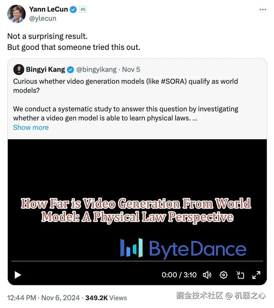 相关推文在 X 发布后,获得 Yann LeCun 点赞转发,还评价道 —— 结果虽不意外,但有人尝试研究确实是一件好事。