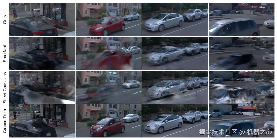 与前有基于重建的方法比较,FreeVS 在新车辆运动轨迹下几乎不受图像模糊、伪影等现象困扰。