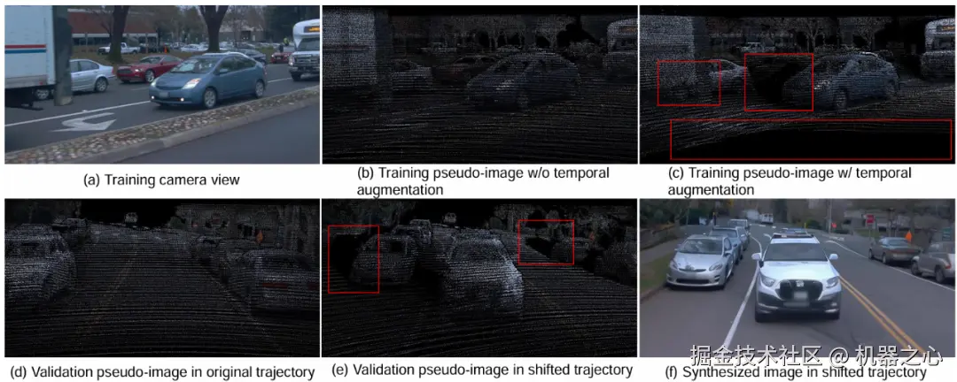 在训练过程中,生成模型学习基于给定帧的三维先验生成邻近帧的相机成像。尽管训练数据中驾驶车辆在绝大多情况下走直线前行,但生成模型可沿车辆轨迹在侧向相机视角学习相机视角的横向移动。