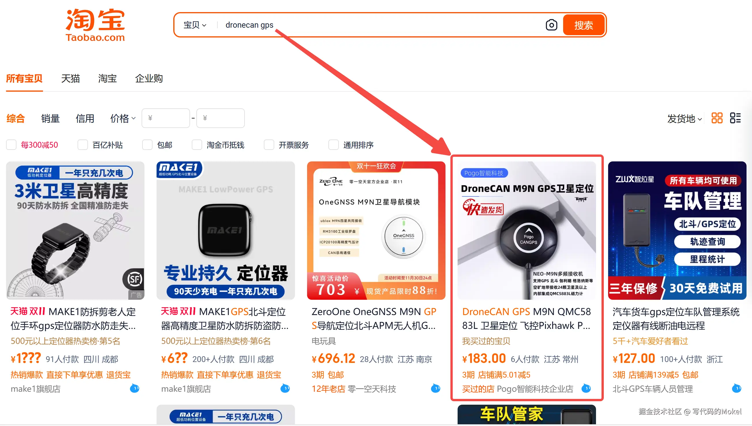 你可以在某宝搜索dronecan gps获取商品或者直接通过链接跳转到商品详情页了解更多信息:item.taobao.com/item.htm?ab…