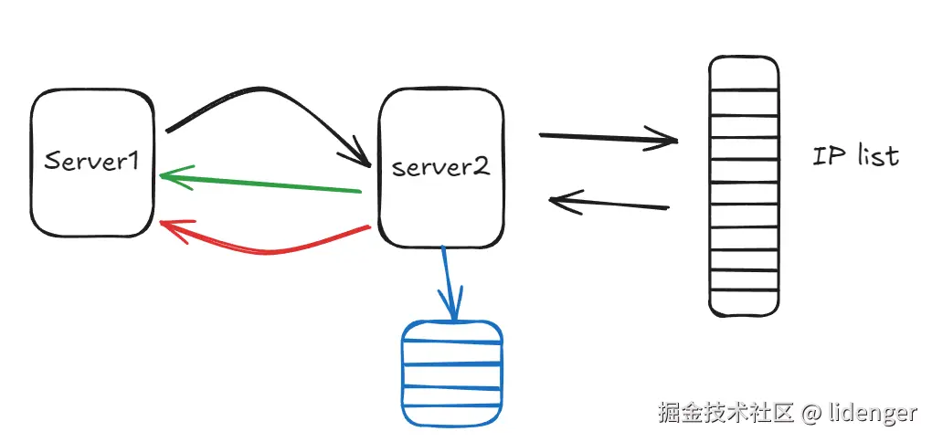 通过IP白名单认证比较简洁,Server2(s2)维护合法的IP白名单列表,通过Client IP即可确认请求服务信息