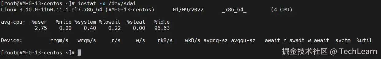 用iostat -x /dev/sda1来观看磁盘I/O的详细情况: